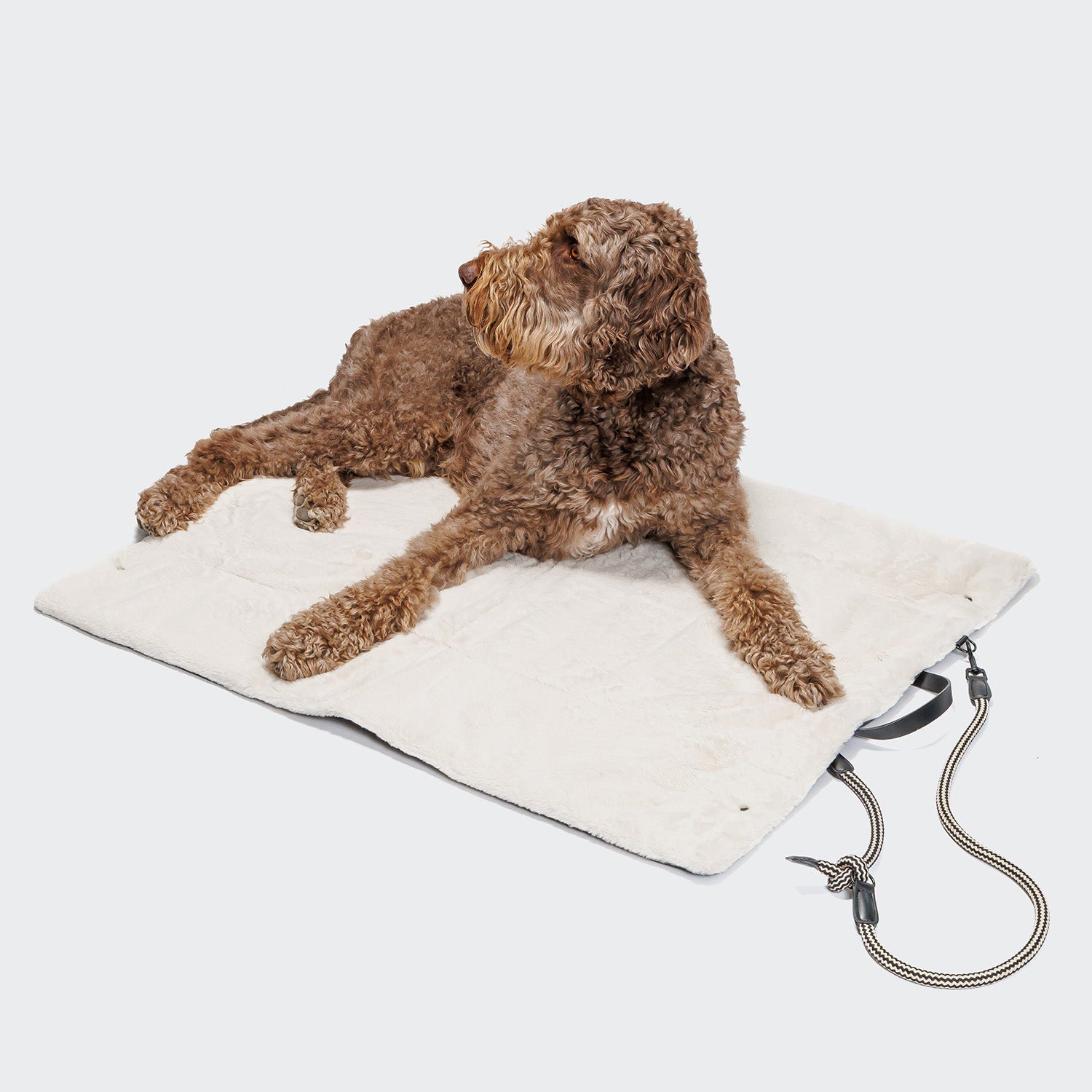 Eine neue Variante des beliebten Hundebetts für unterwegs „Travel Bed“, dieses Mal faltbar zu einer praktischen Umhängetasche. Neben einem strapazierfähigen Außenmaterial im coolen Canvas-Look und extra kuscheligem Innenfutter aus Plüsch für einen bequemen Liegeplatz auf Reisen präsentiert das Hunde Reisebett verschiedene durchdachte Details: So ist der Schulterriemen dank Karabinern auf beiden Seiten abnehmbar und stattdessen auch als Hundeleine nutzbar. Die Gurtlänge kann flexibel durch einen Knoten verstellt werden. Schwarze Metallringe an der Außenseite ermöglichen zusätzlich die einfache Befestigung weiterer Reise-Gadgets für Hunde, wie z.B. einen Reisenapf, Kotbeutelspender oder Leckerlibeutel. Die Details in Lederoptik sind genauso hochwertig wie ihr Look, bestehen jedoch aus komplett veganem Lederersatz mit Kaktusfasern. Das so genannte „Kaktus-Leder” ist sehr stabil und gleichzeitig pflegeleicht.