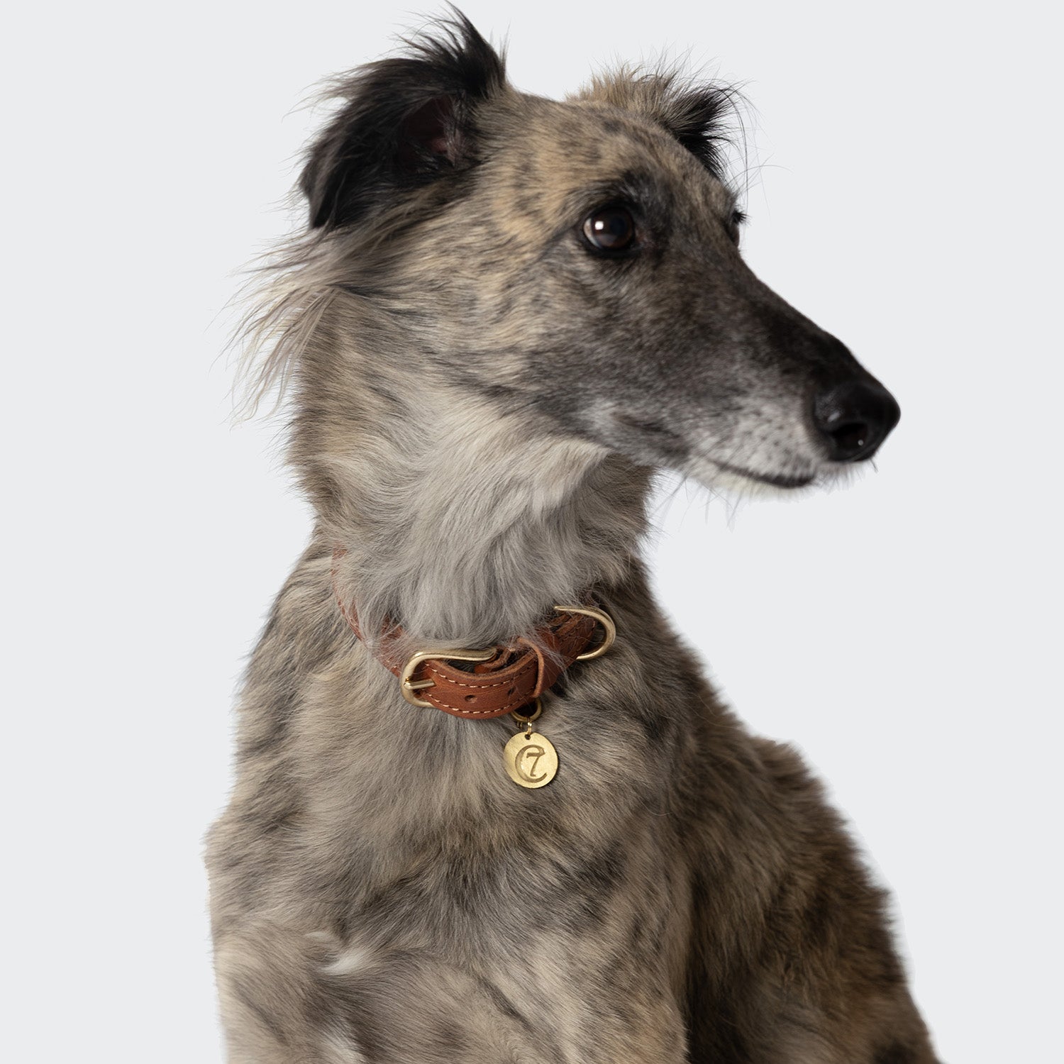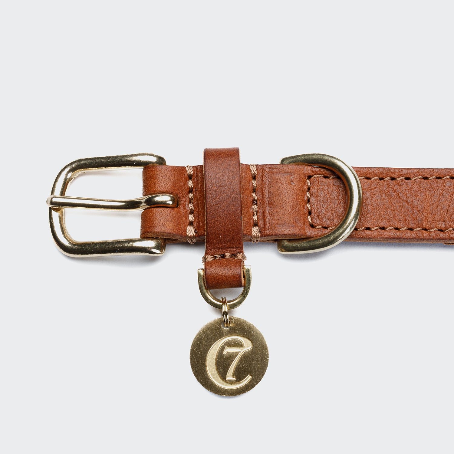 Lederhalsband für Hunde aus besonders strapazierfähigem Rindsleder in Cognac-Braun mit robusten Metallteilen aus echtem Messing.