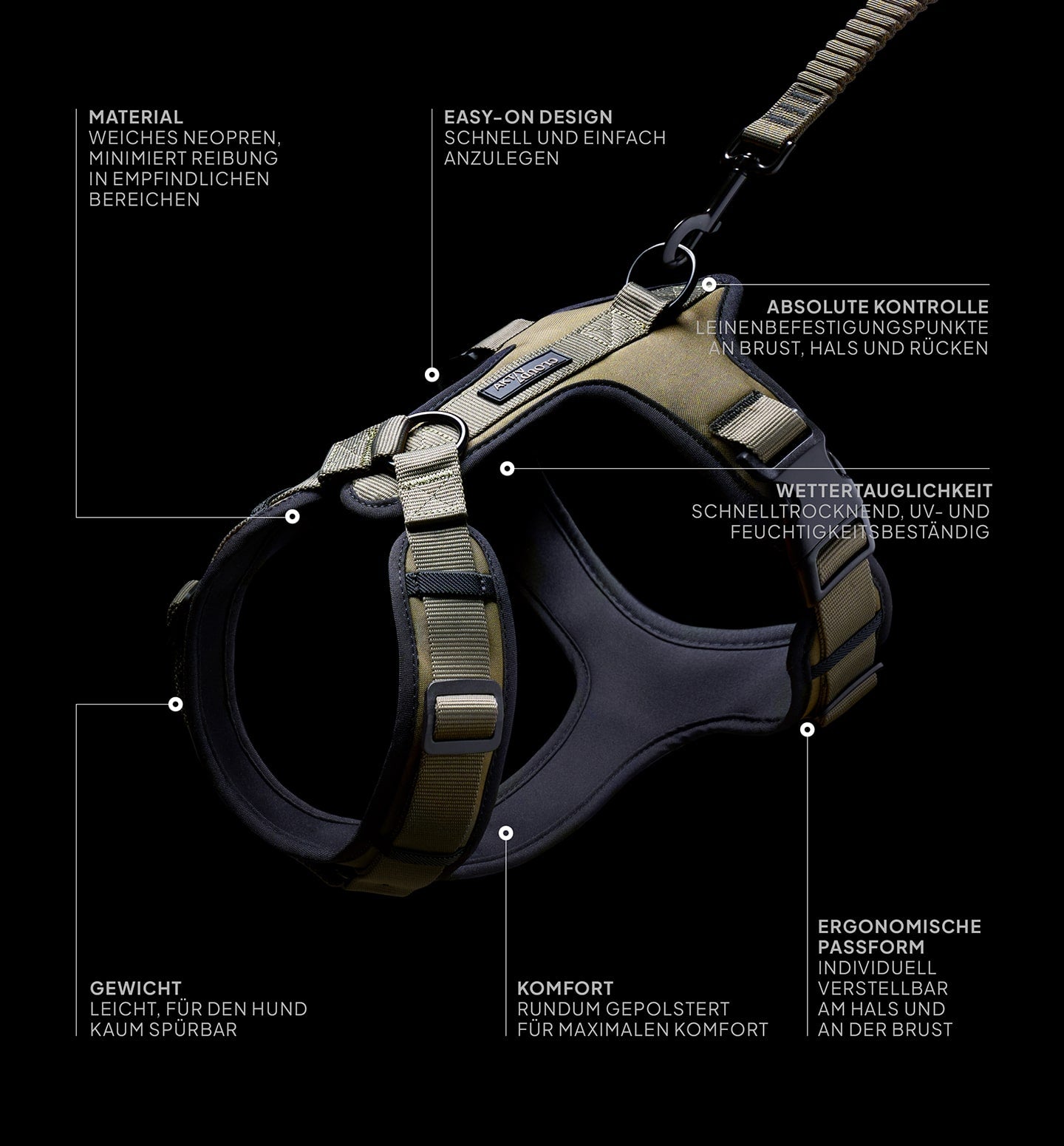 Für alle Hunde zwischen 6kg - 30kg geeignet. Dieses Geschirr ist ideal für den anspruchsvollen Einsatz, bei dem Komfort und Sicherheit im Vordergrund stehen.