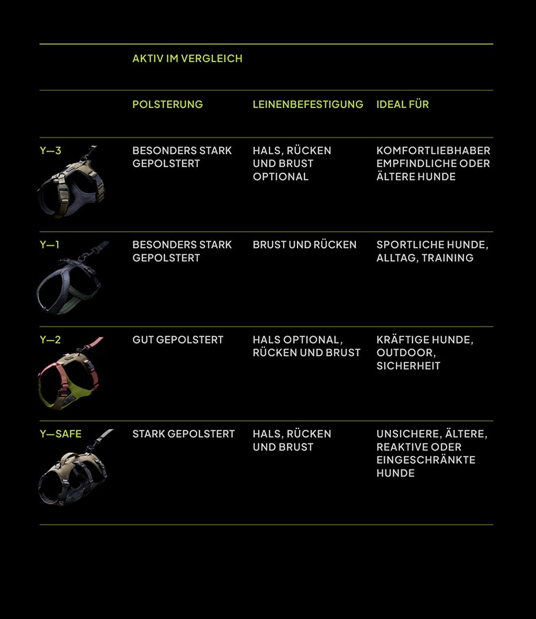 Das besonders bequeme Geschirr Y3 konzentriert sich auf Sicherheit, maximalen Tragekomfort und perfekte Passform.