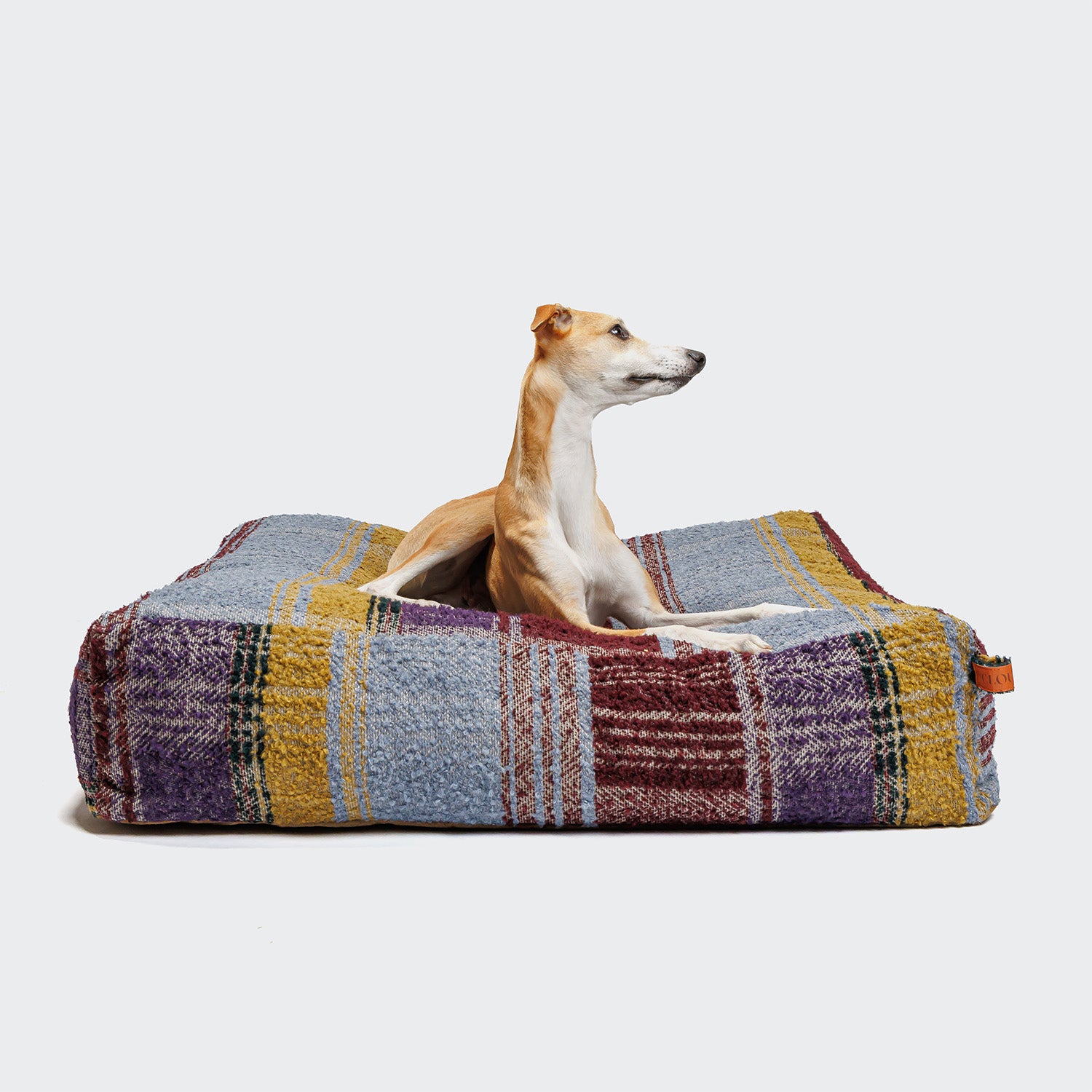 A quadratic dog bed with a firm yet comfortable mattress for dogs. The organic cotton covered mattress includes a chamber system which is individually crafted by hand to prevent sagging even after years of use. Additionally, the interchangeable bed cover is easily machine washable whilst durable enough to withstand scratches from dog nails and sharp dog teeth. The square-shaped dog bed design allows dogs to sink comfortably for a deep regenerative sleep whereas the look enhances any home interior.