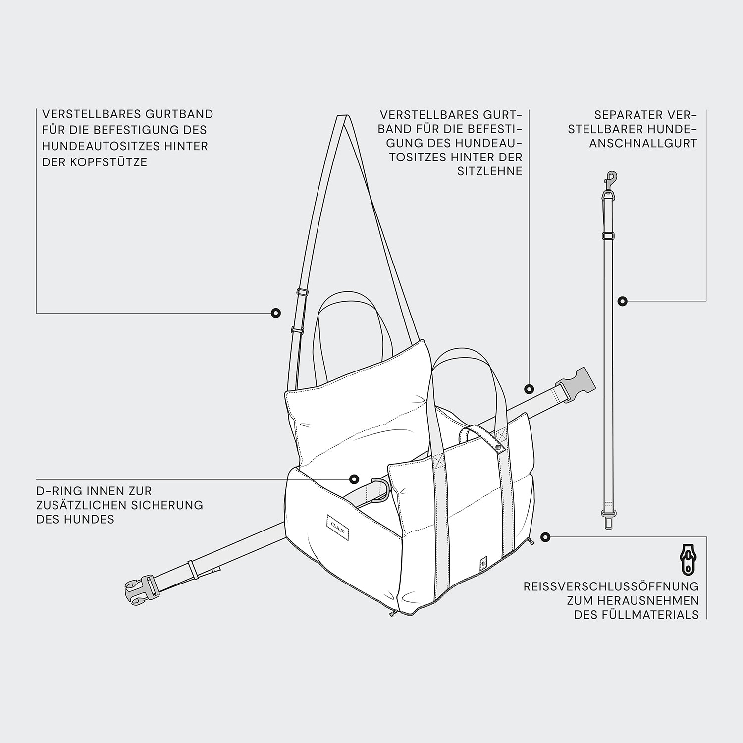 Multifunctional car seat for dogs that ensures safety and comfort on every journey.