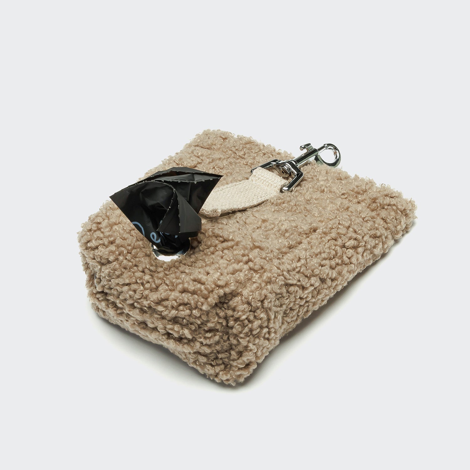 Limited Edition Dog Treat Bag in a Plush Look with integrated poop bag dispenser. The sturdy carabiner is ideal for attaching to trousers, backpack, or bag.