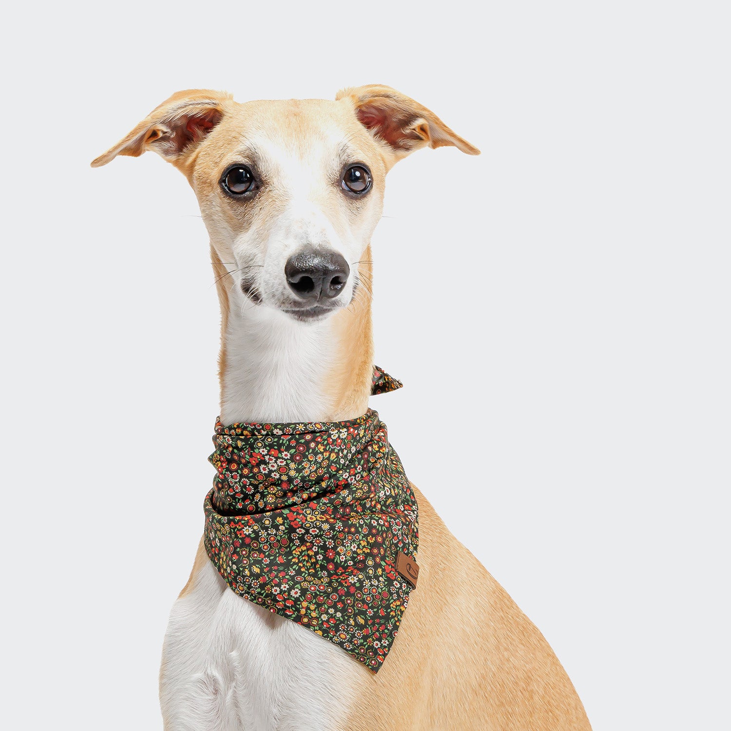 Soft cotton dog bandana with colourful timeless flower print — an original high quality Liberty London fabric, complemented with chic details.