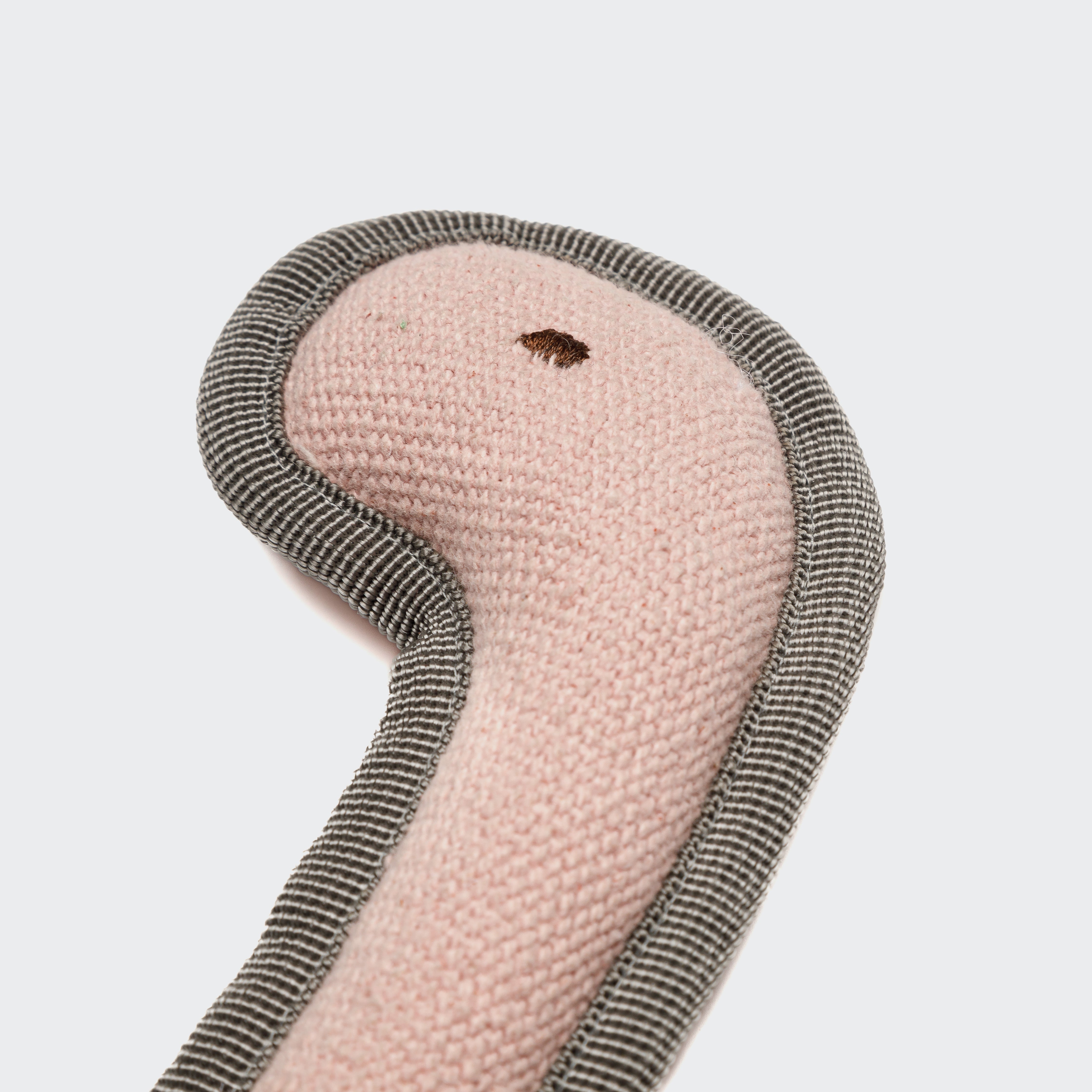 Super durable toy in original dinosaur design. Let off steam with this all-rounder toy for both cuddlers and wrestlers. Dog toy made with recycled materials.