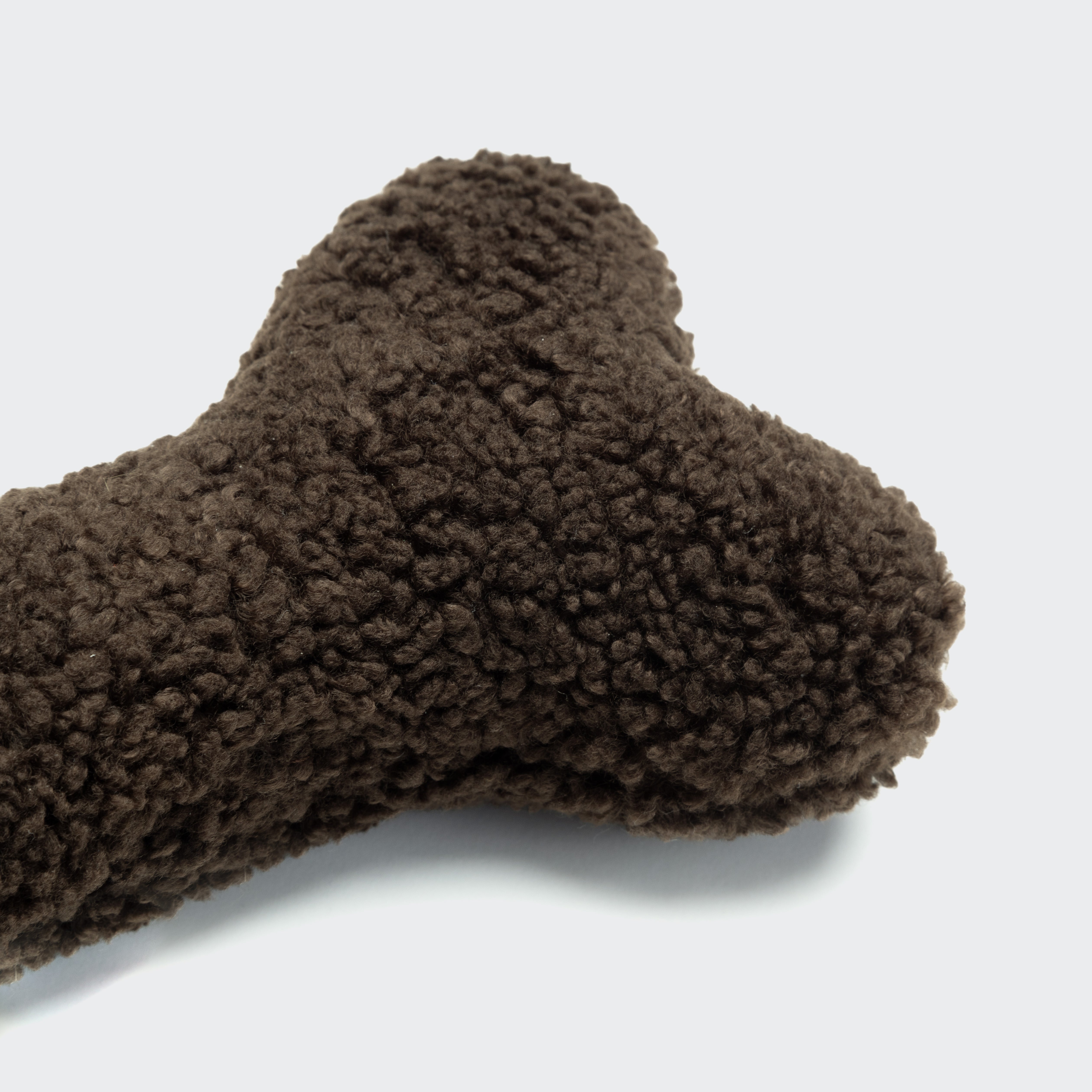 Fun & soft stuffed dog toy in the shape of a dog bone made with extremely soft dark brown plush lining. The squeaky dog toy is also great for puppies.