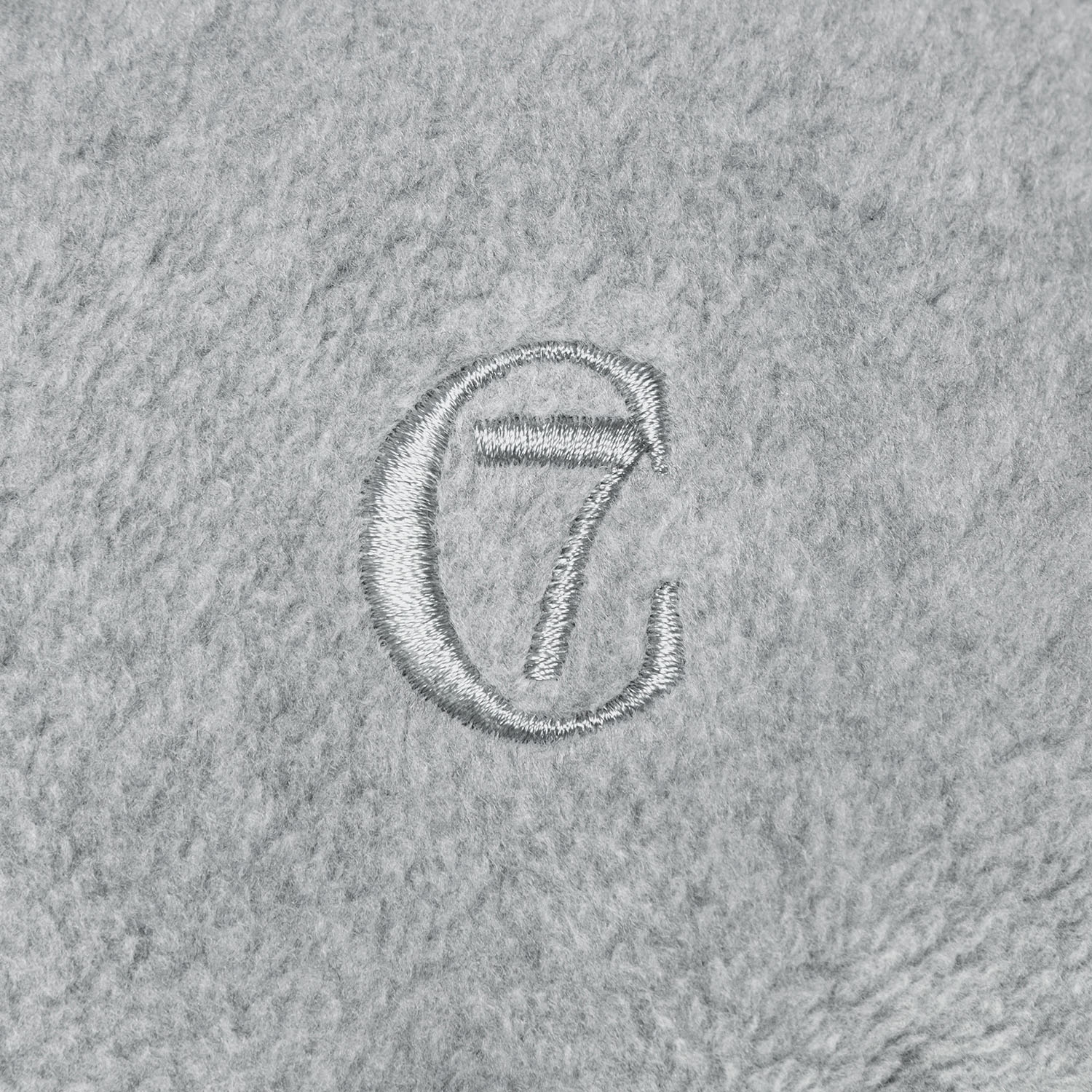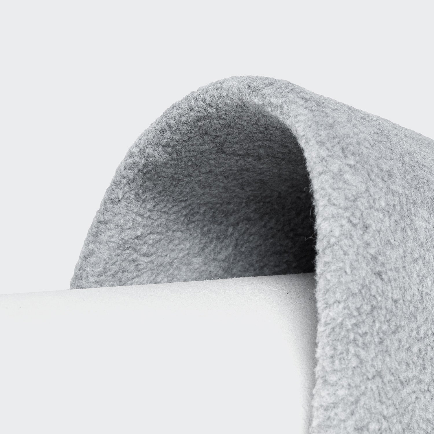 Warm fleece dog sweater in light grey with extended belly protection made with recycled materials. Effortless wear system thanks to Velcro fasteners. Available for small and large dogs up to 48 kg.