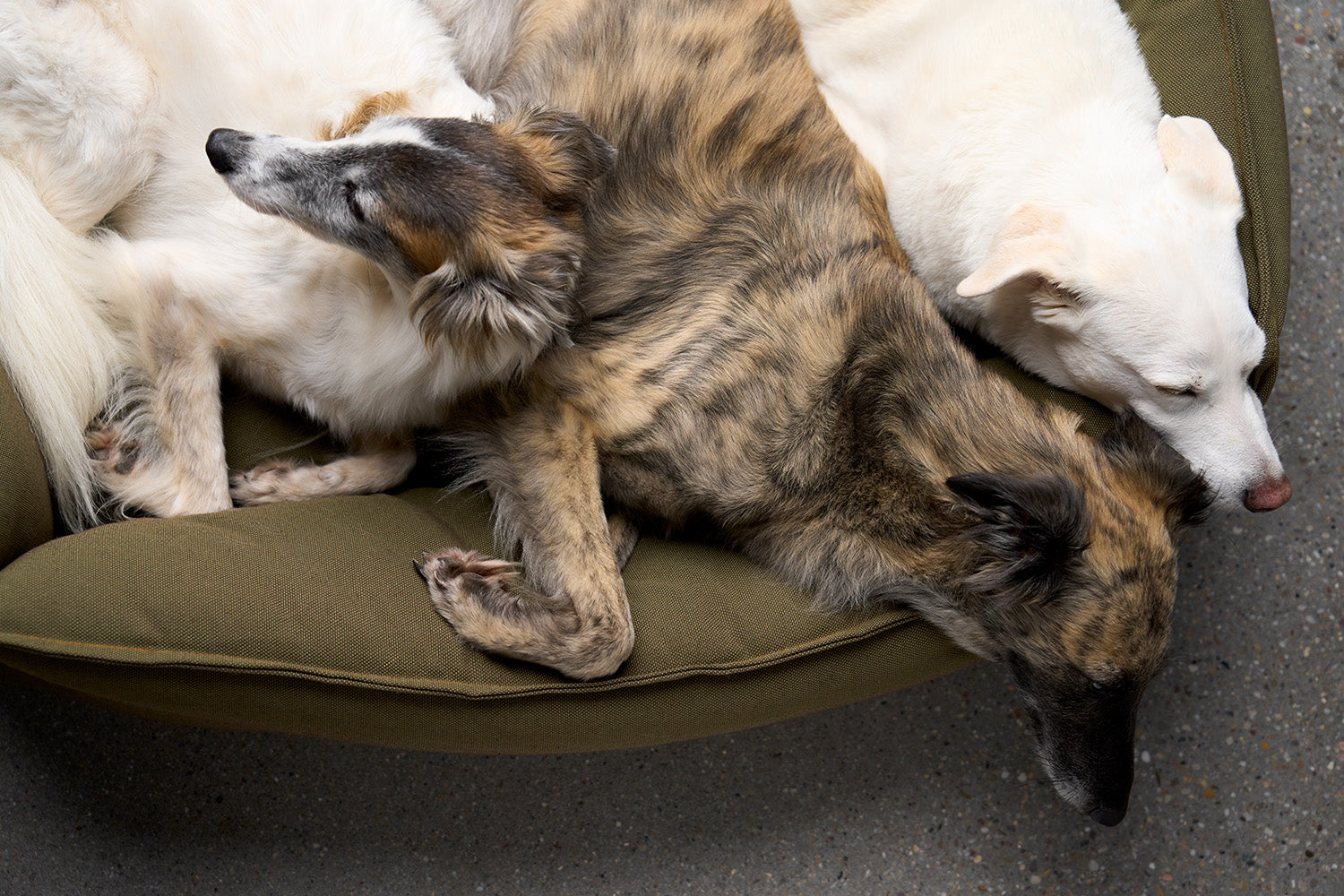 XXL dogs such as Mastiffs, Rhodesian Ridgebacks, St. Bernards, Bernese Mountain Dogs, Great Danes and Co. need space and, like all other dogs, the most comfortable possible lying surface. Depending on the weight of the dog, softer and firmer dog pillows are available, in which the dogs sink in more or less. These cushions are especially suitable for animals that are long and like to sleep on their back or side. There is no need for a border, but only a large, comfortable sleeping place. Here the rule of thumb of at least 20 centimetres of extra space to stretch out applies. Dog pillows are also available in more or less raised versions so that the dog can, if desired, have an optimal overview at all times.