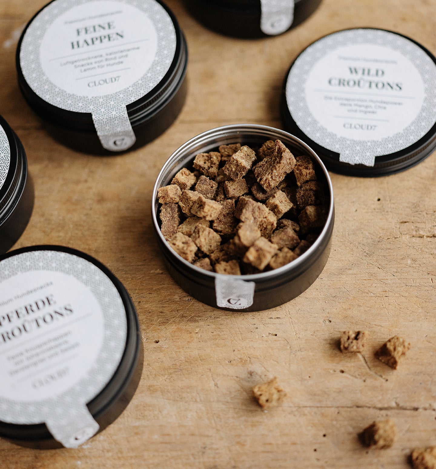 The snacks are not only available for dog training, but also as a chewy snack to keep your dog occupied, as air-dried small sausages for between meals or as baked cookies full of superfoods.
