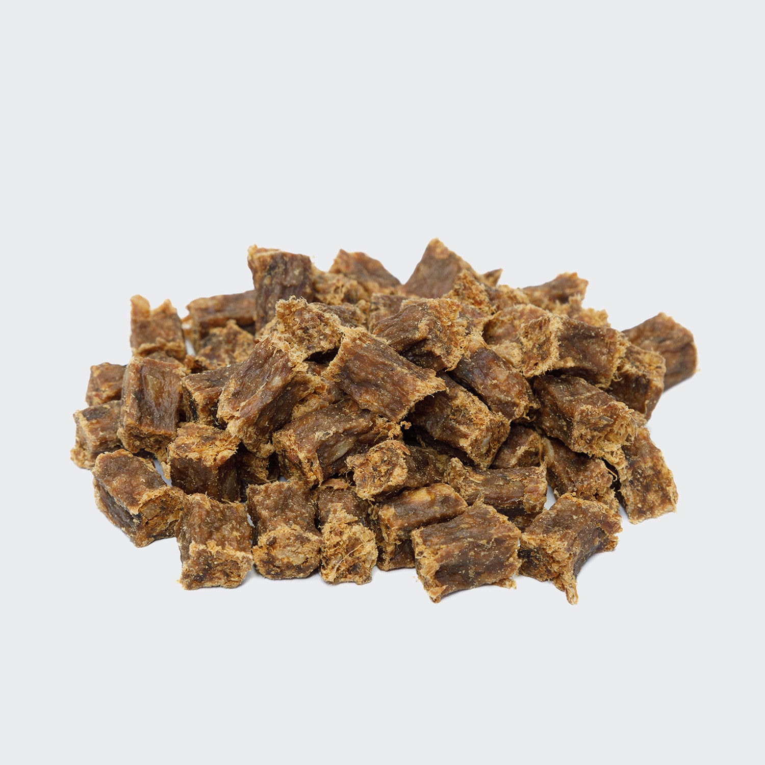 Soft cubes made from 99% air-dried lamb with a pinch of sea salt and cold-pressed natural oils. A small gourmet snack for dog training or as a reward in-between.