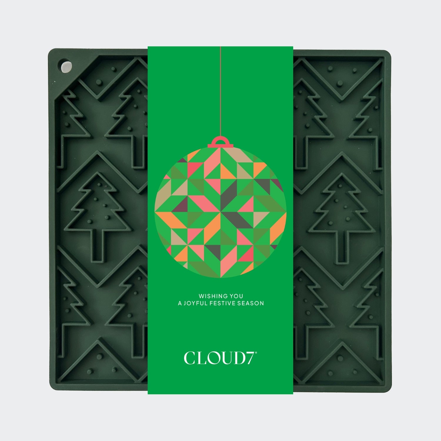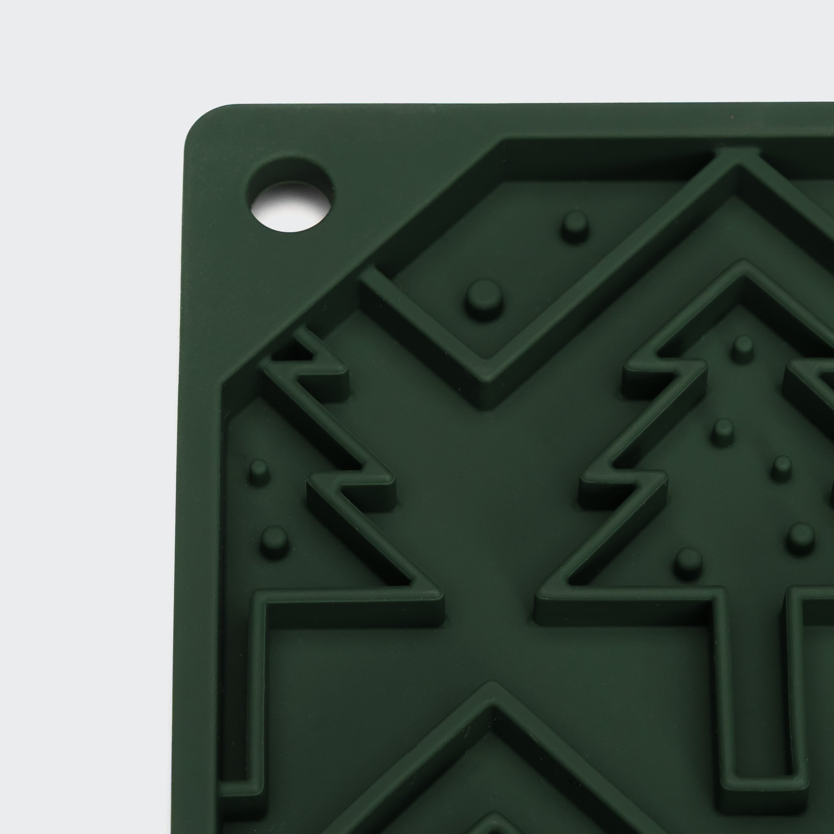 Festive lick mat made of durable silicone with a textured surface in a Christmas tree design – promotes stress-reducing licking and calm engagement.
