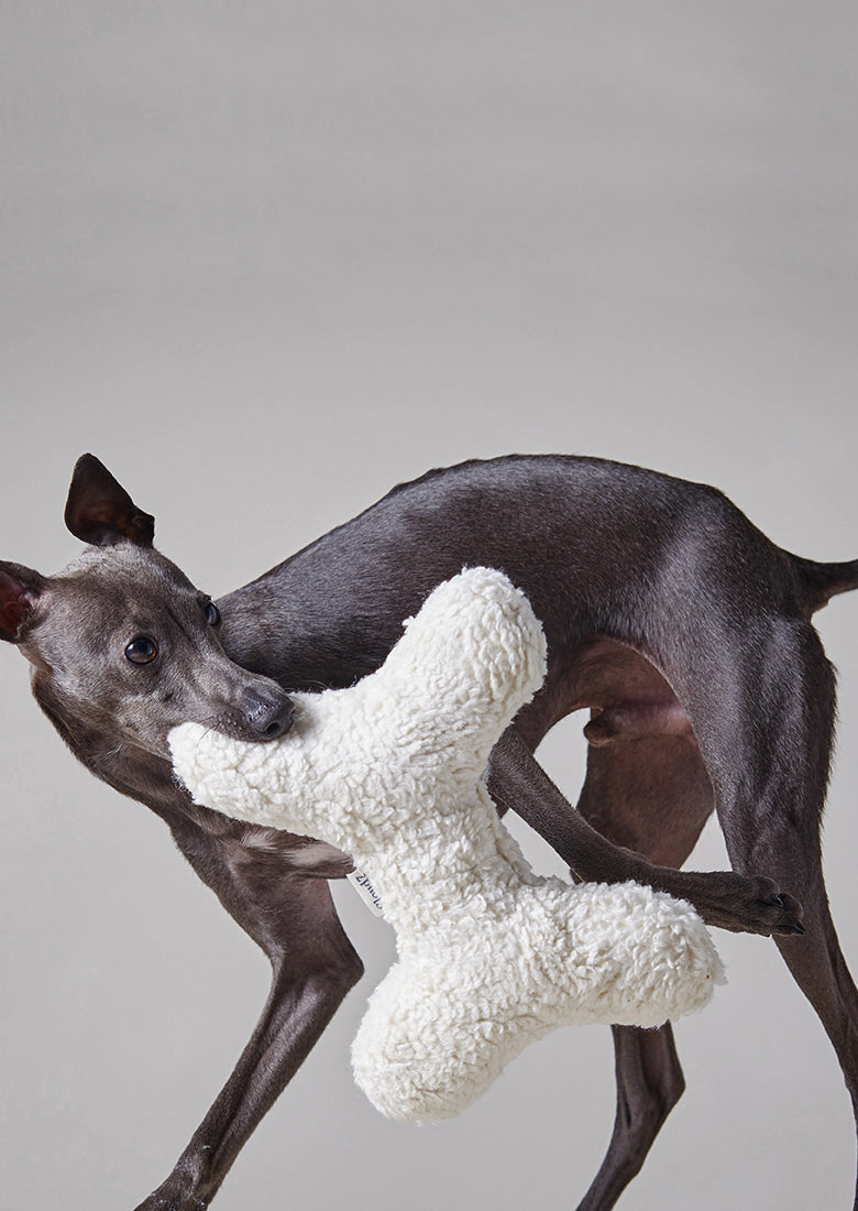 - the felt toy of Cloud7 is available in different forms as "BONE", "BALL", "CONE" and "POTATO". The robust toys with integrated squeaker are made of natural wool felt and can easily be washed in the machine. So the simple, classic design looks like new even after a lot of play and fun.