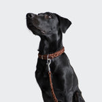Fettleder Hundehalsband aus geflochtenem, besonders weichen Leder in Dunkelbraun mit Schließe und Nieten aus Edelstahl.