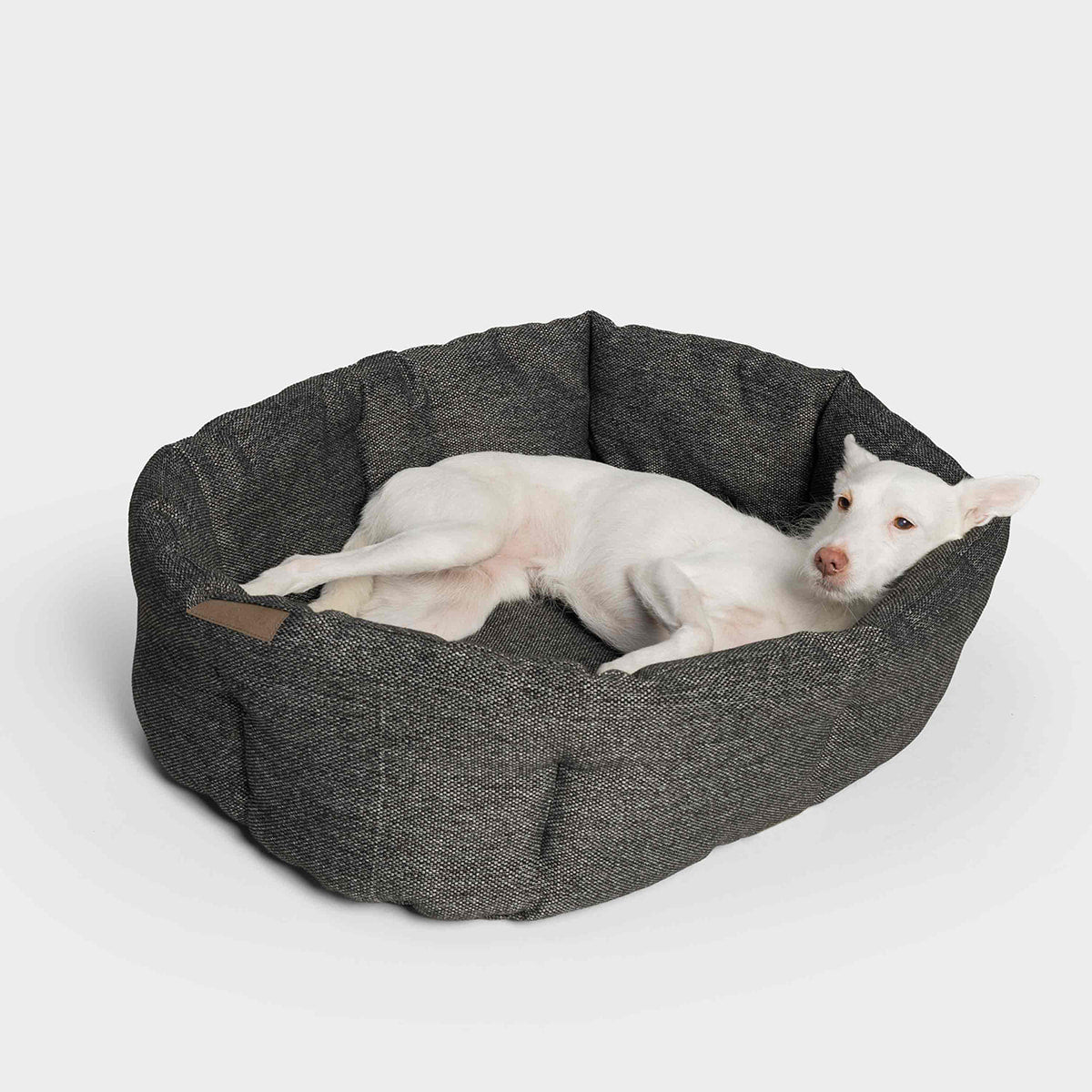 Weiches, ovales Hundekissen Lazy aus robustem Mélange-Material – langlebig und pflegeleicht, ideal für Hunde, die sich gerne einrollen oder anlehnen.
