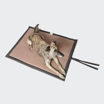 Bequeme Hundematte in Graphite-Sand aus wasserabweisendem Material, die sich einfach zusammenrollen lässt.