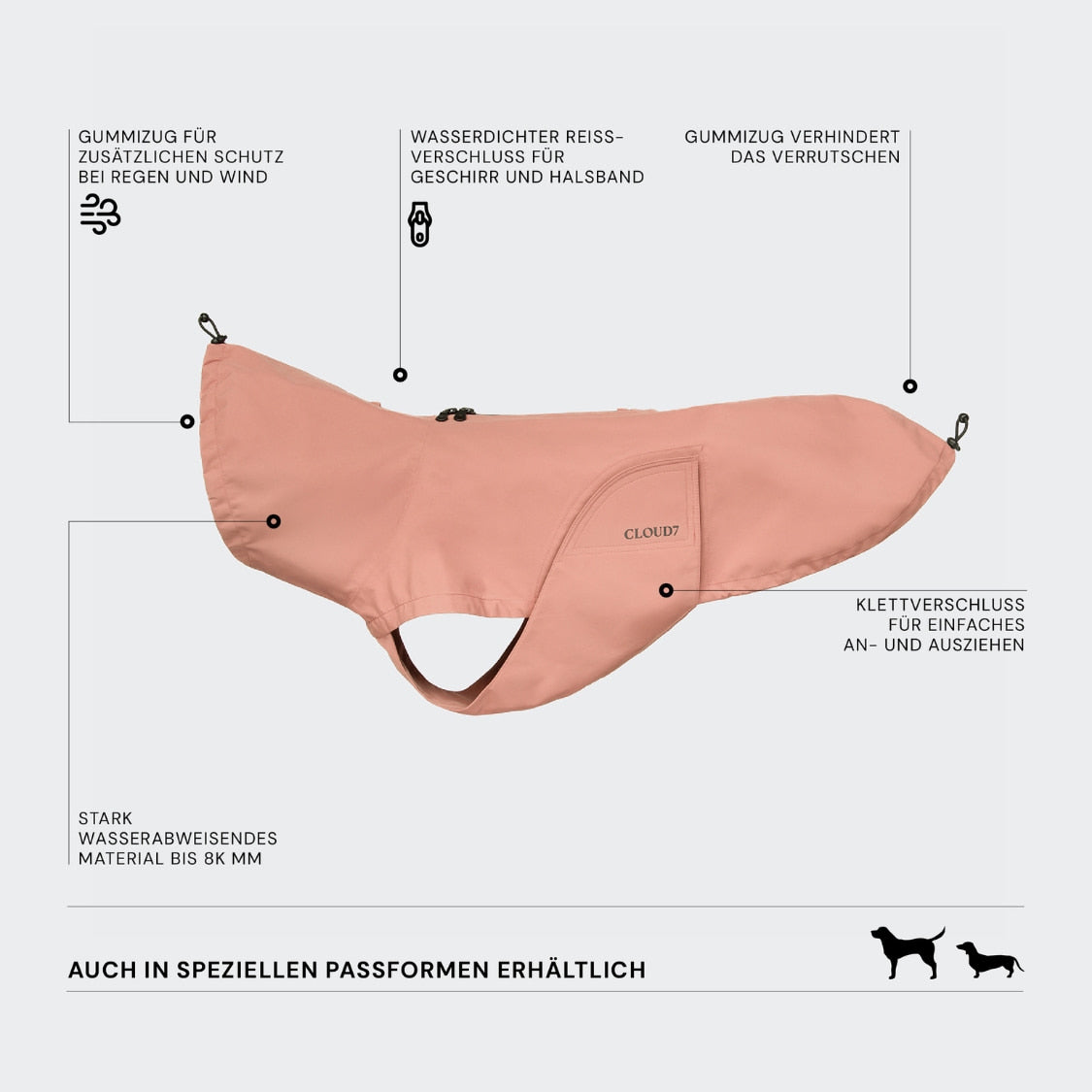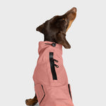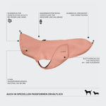 Speziell für Dackel. Samtig weicher, wasserdichter Regenmantel für Dackel in Faded Rose mit funktionaler, wetterfester Verarbeitung.